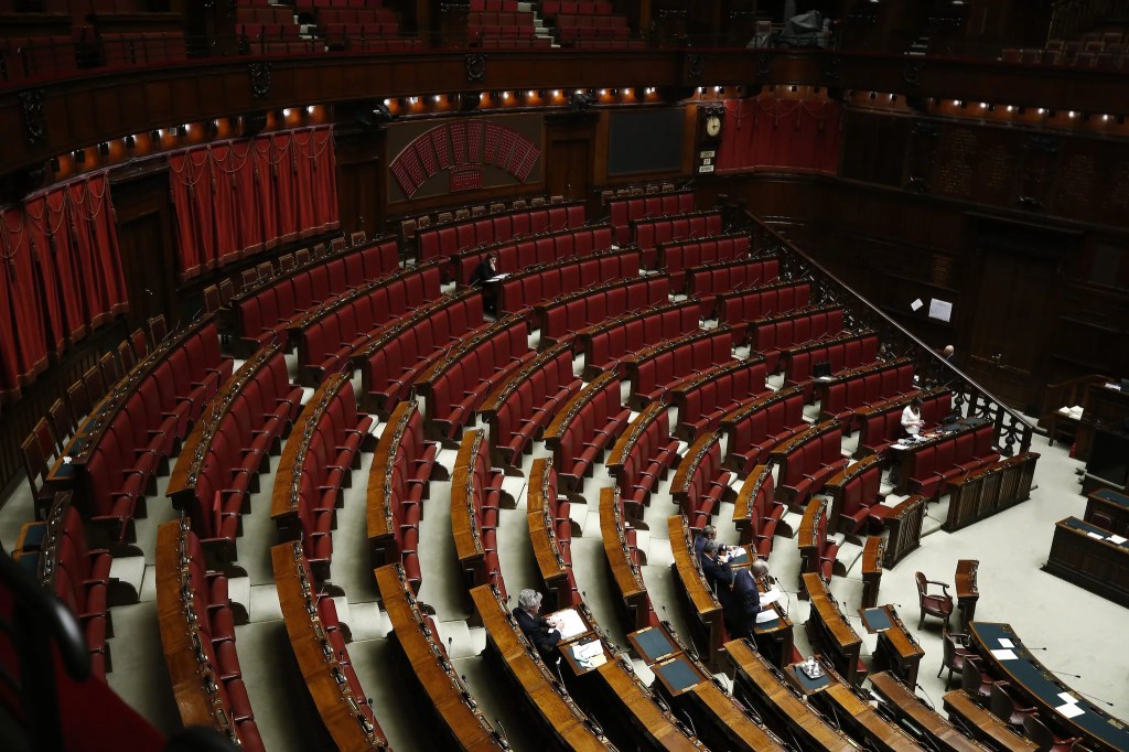 La Ministra per le Pari Opportunità Elena Bonetti, vestita di rosso, mascherina compresa, perché il rosso è il colore scelto per la Giornata contro la Violenza sulle donne, illustra alla Camera una mozione sull’argomento, enunciando alcune importanti misure a sostegno delle vittime, tra cui il microcredito di libertà e il reddito di libertà.
